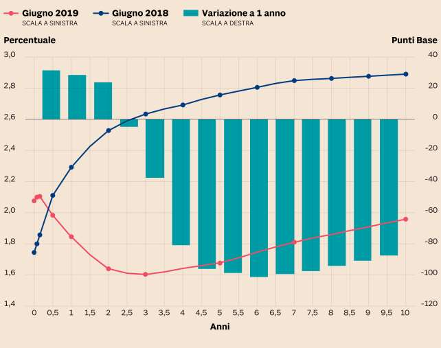 Negli ultimi tempi le curve dei rendimenti di molte economie avanzate hanno cambiato forma spostandosi verso il basso, riducendo la loro volatilità e la loro pendenza fino ad appiattirsi se non addirittura invertirsi con tassi d'interesse a breve superiori a quelli a lunga scadenza.